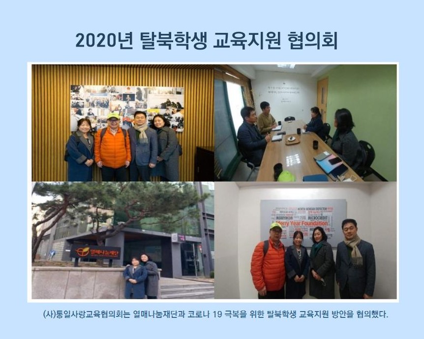 열매나눔재단 <탈북학생 교육지원>협의회 운영자 0 3218 2020.04.01 05:47 (사)통일사랑교육협의회는 탈 북 가정 자녀들이 학교 현장에서 겪는 어려움과 코로나 19 사태로 개학 연기에 따른 지원 방안을 모색하는 협의회를 진행했다.