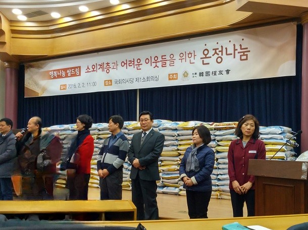 2016년 새해 아름다운 동행 쌀 나눔 행사 운영자 0 3365 2016.01.29 03:07 새해를 맞으며 따뜻한 온정이 담긴 사랑의 쌀 나눔 행사로 북한 이탈 주민 가정에 전달하였다.고향에 갈 수 없는 탈 북 가정에 사랑의 쌀 나눔으로 따뜻한 새해가 되길 응원합니다.!