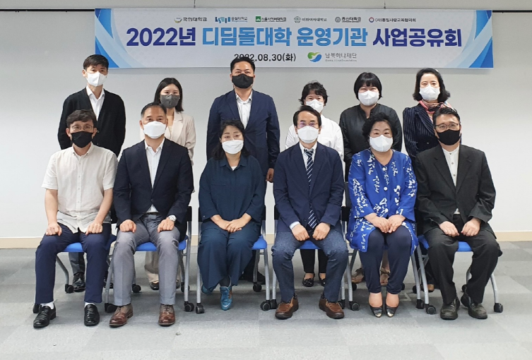 2022년 남북하나재단 디딤돌대학 위탁 사업 공유회 운영자 0 2704 2022.11.16 19:57 o 일시 : 2022년 8월 30일(화) 10~12시, o 장소 : 서울시 마포구 공덕동 남북하나재단 14층 강당 o 내용 : 디딤돌대학 위탁기관별 사업 공유