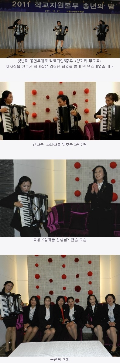 2011년 송년의 밤 축하공연 샛별 0 3363 2012.08.23 15:49 2011. 12. 28. 한국 문화 교육 회관 송년의 밤 축하 공연 --------------------------------------------------------------